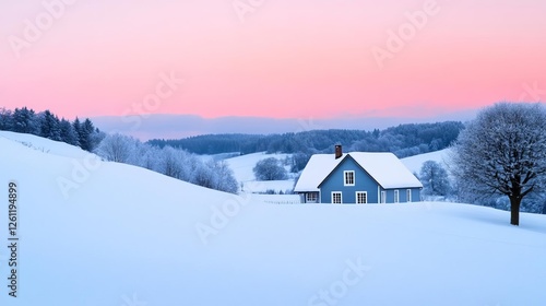Gentle snowfall at twilight, creating a peaceful and quiet winter ambiance