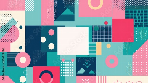 Geometric Abstract Background: A vibrant and playful geometric abstract background featuring a variety of shapes, colors, and patterns. Perfect for adding a touch of modern design to any project.