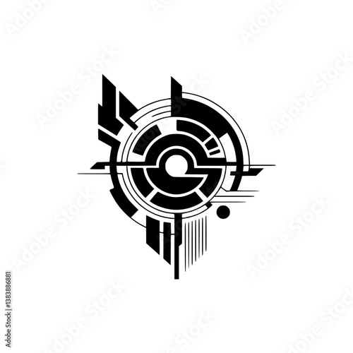 Geometric Abstraction: Modern Art Deco Emblem on White