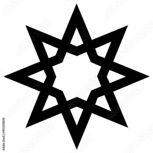 Geometric black star symbol with a central eight-pointed star shape on a white background