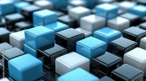 Geometric blocks arranged in a 3D form that represents the successful completion of a goal, career growth, or business achievement in a visually appealing and modern style.