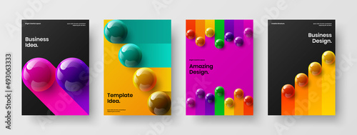 Geometric brochure design vector template composition. Modern 3D balls poster illustration collection.