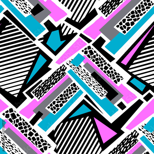 Geometric curved lines graffiti seamless hand craft expressive ink hipster pattern.