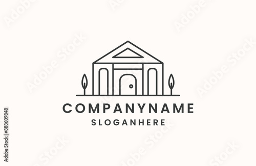 geometric line house logo. Home apartment building logotype.