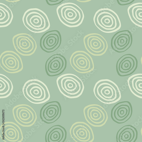 Geometric pattern in pastel colors. Yellow, white and green spirals on light green background.
