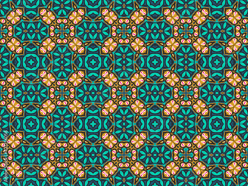 Geometric Tile Digital Paper Gold Yellow, Green, Black, and Blue for Print and Background. Wallpaper Geometric Ornament Abstract Pattern.