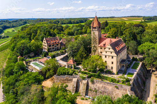 Germany, Baden-Wurttemberg, Brackenheim, Helicopter view of Schloss StocksbergÔøΩin summer