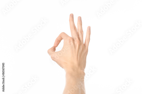 Gestures topic: human hand gestures showing first-person view isolated on white background in studio
