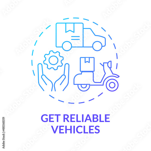 Get reliable vehicles blue gradient concept icon. Freight delivery business abstract idea thin line illustration. Isolated outline drawing. Roboto-Medium, Myriad Pro-Bold fonts used