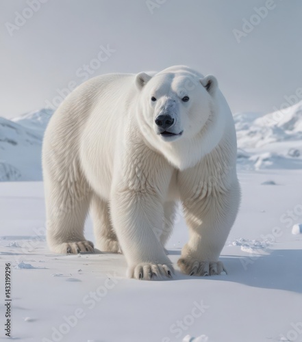 Ghostly white polar bear, seamless blend with snow, icy landscape , white, nature photography