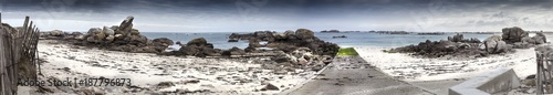 Giant granite stones coastline in Brittany, France, panorama made from 6 images
