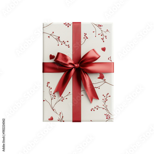 Gift Wrapped with Love: A beautifully presented gift box adorned with a delicate floral pattern and tied with a rich red ribbon, perfect for Valentine's Day or any special occasion.