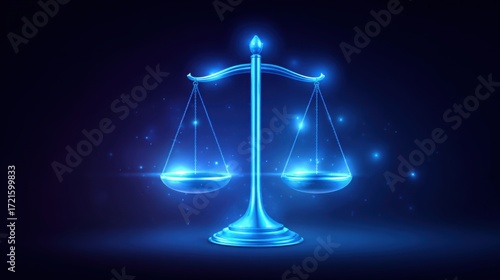 Gig Economy Regulation concept. A glowing blue scale symbolizing justice and balance, set against a dark background, conveying a sense of clarity and fairness.