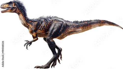 Gigantoraptor displayed against a clean white backdrop, emphasizing its impressive physique, distinctive features, and detailed texture