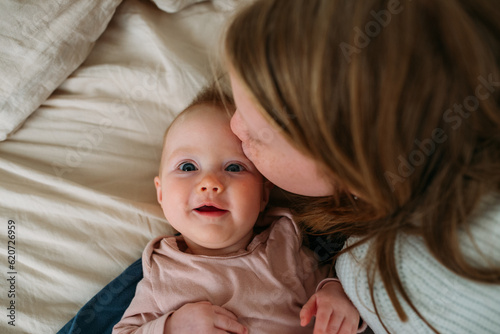 Girl and baby on a bed