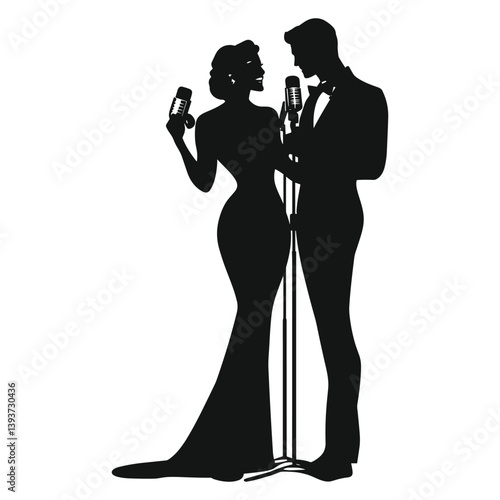 Glamorous Couple Toasting in Formal Wear Silhouette