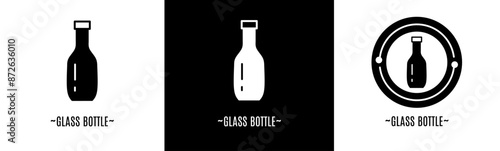 Glass bottle logo set. Collection of black and white logos. Stock vector.