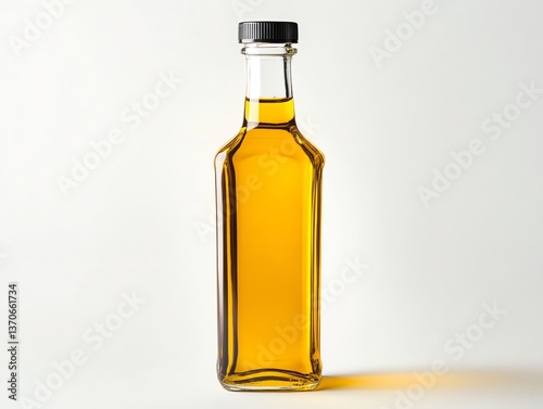 Glass Bottle of Golden Liquid on White Background for Product Showcase