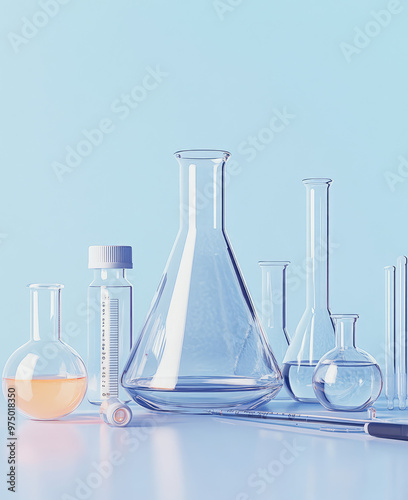 glass flasks in the lab table , white background