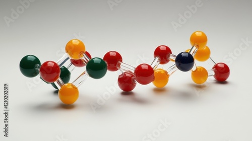 Glass molecule model on horizontal banner: scientific concept for chemistry, biotech, and molecular research