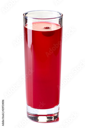 Glass of cranberry fruit drink on white