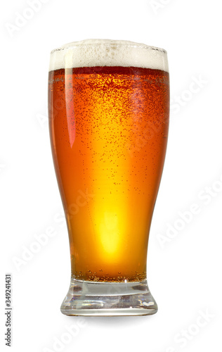 Glass of fresh beer isolated on white background