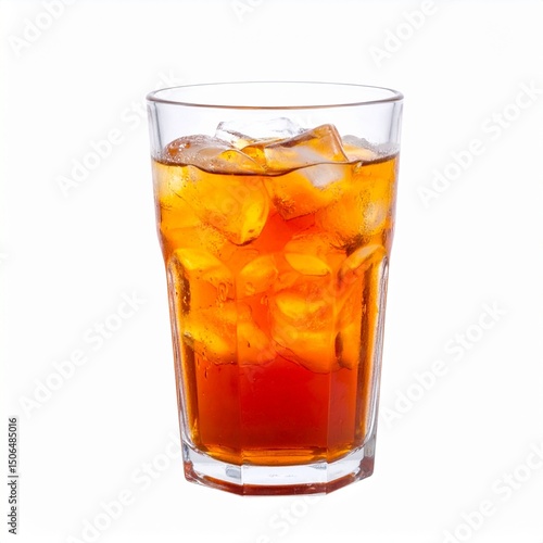 Glass of iced tea isolated on white background with clipping path for beverage branding or health concept