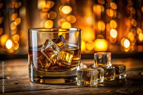 Glass of Whiskey with Ice in Elegant Setting for Portrait Photography