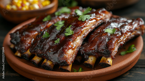 Glazed BBQ Ribs on Rustic Plate Delicious Food Photography
