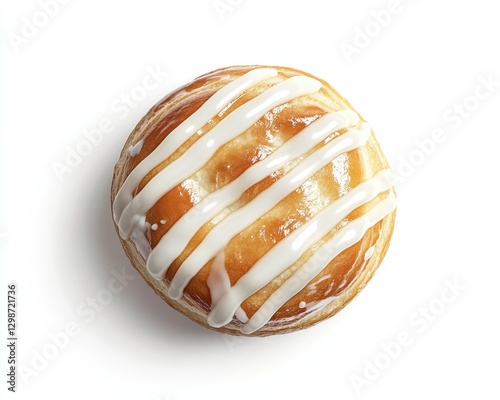 Glazed Sweet Pastry on White Background with Drizzle of Icing