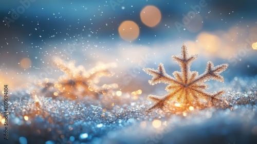 Glittering Snowflakes Resting on Sparkling Winter Snow