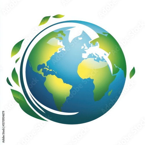 Global environmental awareness symbol featuring a stylized Earth surrounded by greenery and natural elements