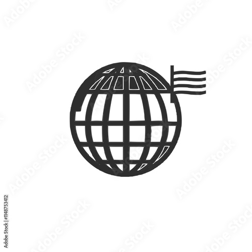 Globe and flag icon in minimalist black and white design