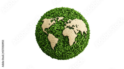 Globe with World Map, Leafy Texture, Sustainable Earth, cut out transparent