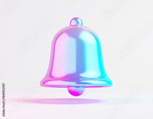Glossy 3D bell in pink, purple, and cyan gradients with smooth reflective surface—modern digital symbol for alerts and notifications.