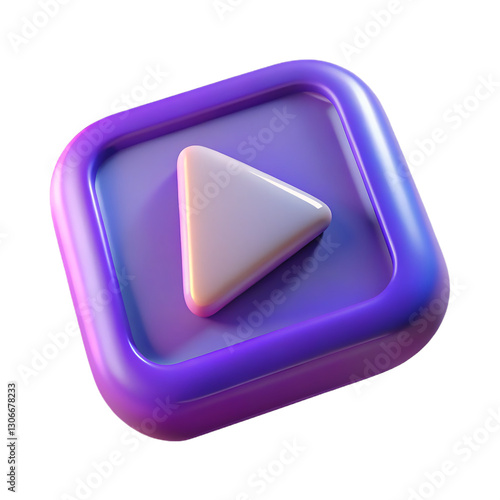 "Glossy 3D Play Button Icon with Neon Glow for Music & Media Apps"