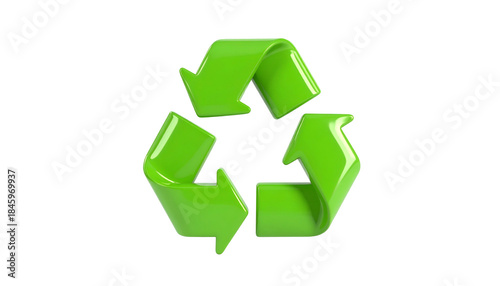 Glossy green recycling symbol with three looping arrows on a solid black background