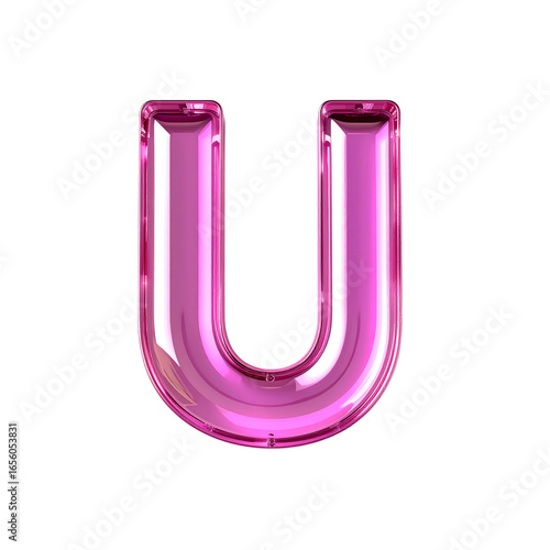 Glossy pink letter U reflective typography style on transparent background
