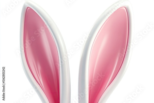 Glossy Rabbit Ears. 3D Render. Easter Bunny Pink and White Fur Texture. Isolated