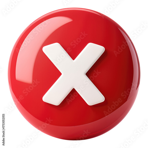 Glossy Red Button with White X, 3D Realism Design Element on Transparent Background