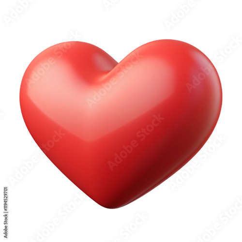 Glossy Red Heart Shape Isolated on White Background for Love Concept