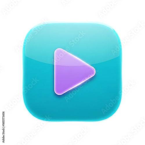Glossy teal square button featuring a purple play symbol.