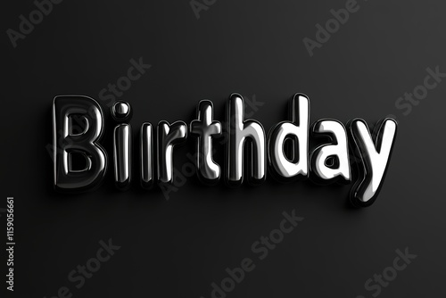 Glossy text spelling "Birthday" stands out against dark backgrou