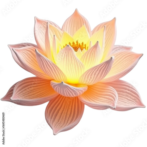 Glowing 3d lotus flower blooming on white or transparent background
