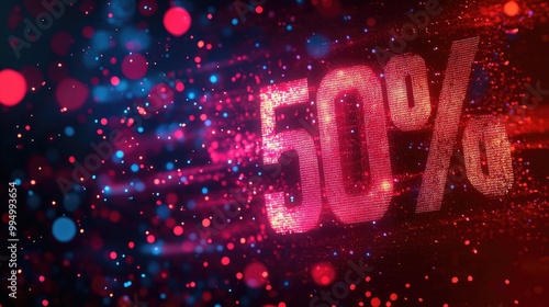 Glowing 50 percent Discount Sign with Colorful Bokeh Lights in Festive Background