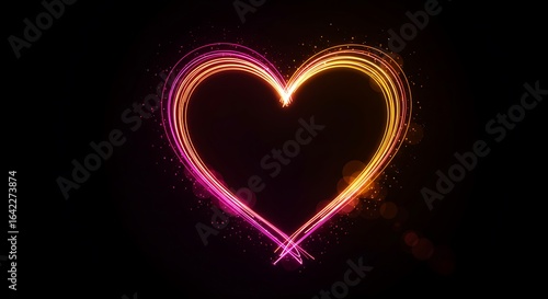 Glowing Abstract Heart Shape with Sparkles and Light Streaks on Black Background