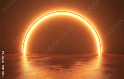 Glowing arch installation creates a warm atmosphere in a minimalist indoor setting