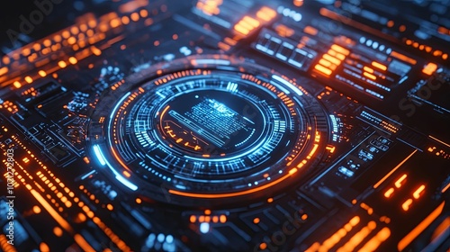 Glowing Blue and Orange Interface with Circular Display
