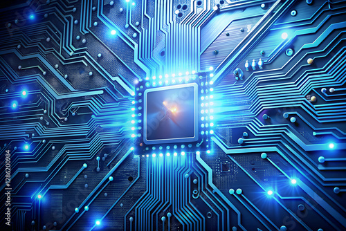 Glowing Blue Digital Circuit Board – Futuristic Technology Background