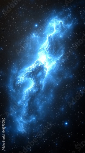 Glowing blue nebula in dark space